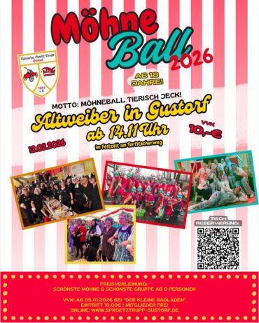 Dieses Jahr gibt es etwas Neues, was eigentlich gar nicht so neu ist, nämlich unser Möhneball-Revival! Lang ist es her, da haben sich Gruppen, verkleidet als „alte Frauen“ mit Maske am Altweiber Donnerstag zum närrischen[…]