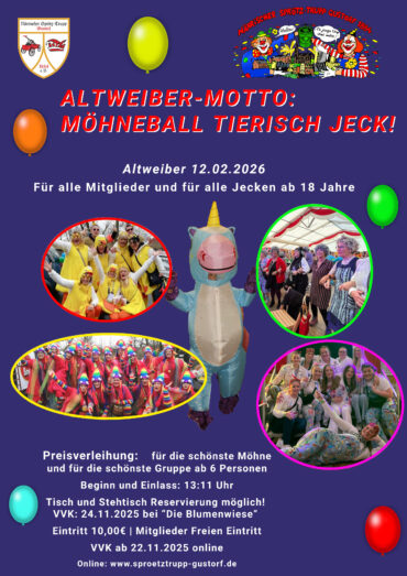 Reservierung eines Stehtisches für den Möhneball -TIERISCH JECK an Altweiber (12.02.2026) 14. Oktober 202514. Oktober 2025 s.bechtel*** NEWS *** weiterlesen …